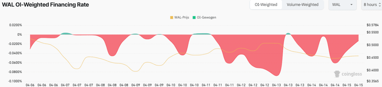 I dati on-chain per WAL mostrano un sentiment ribassista, con il tasso di finanziamento ponderato per l'open interest che scende costantemente in territorio negativo. Secondo il grafico del tasso di finanziamento ponderato per l'open interest, le fluttuazioni avverse degli ultimi giorni indicano una diminuzione dell'interesse all'acquisto e una crescente pressione da parte dei venditori.Fonte: Coinglass