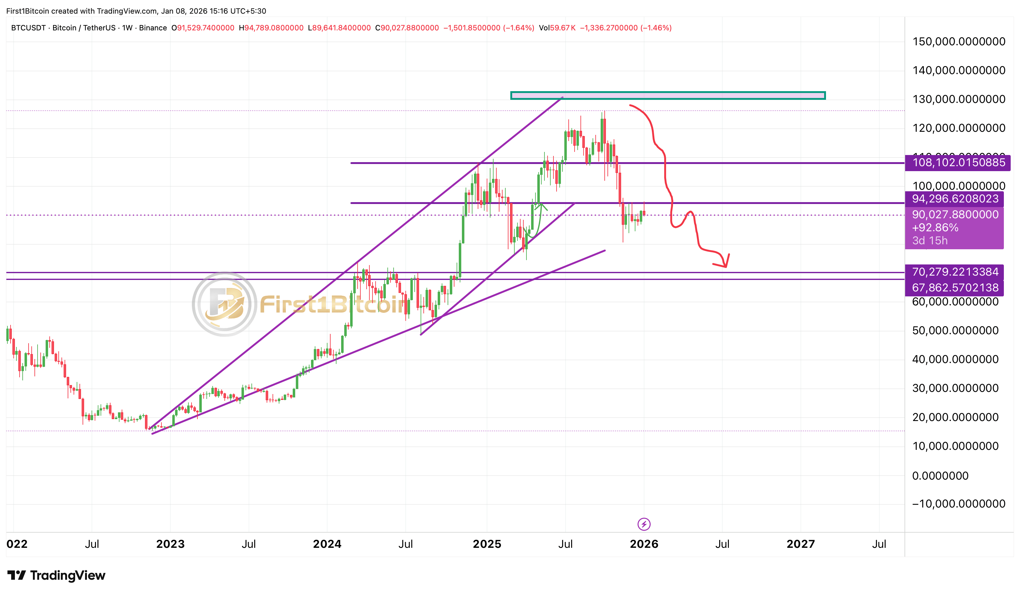 ⚠️ Un fallimento nel mantenere potrebbe aprire un ritracciamento più profondo verso i 70.000–75.000 $