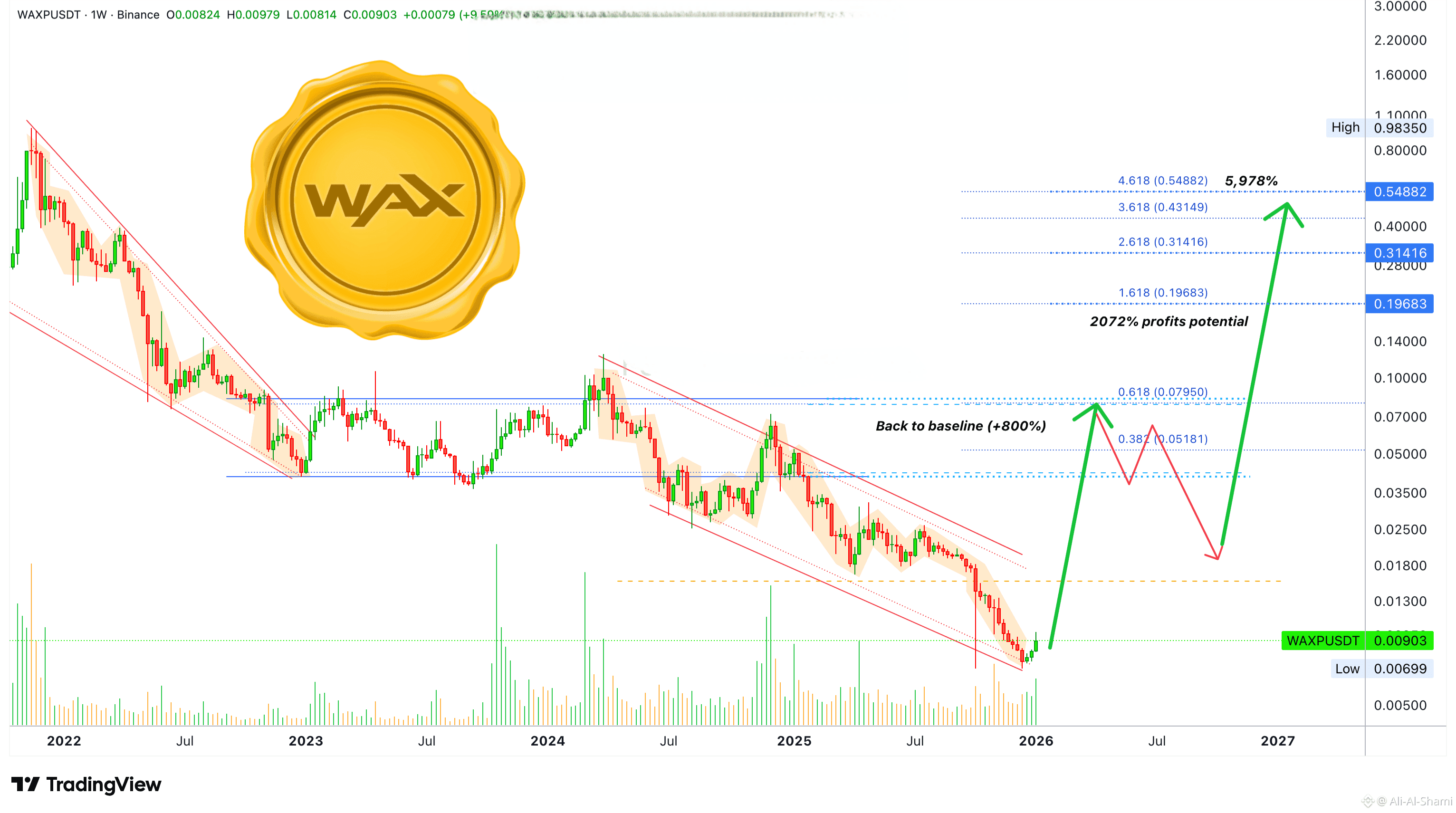 سوق العملات المشفرة على وشك شيء ما. لدى WAXPUSDT إمكانية ربحية تصل إلى 800٪ للعودة إلى المستوى الأساسي. موجة وصعود بسيطة للغاية وستكون غير قابلة للتجنب.