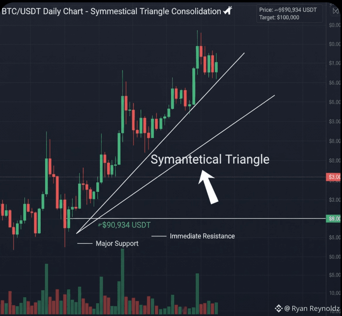 * Pattern: Symmetrical Triangle. After the surge to $94k, BTC is forming a tightening triangle. This pattern usually results in a violent breakout once the "apex" is reached.