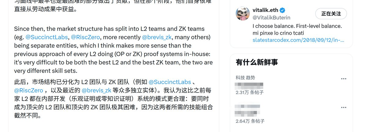 Inoltre, nel post di V神 si menziona specificamente Brevis, che lavora sui ZK-VM. Il motivo è che Brevis svolge molte attività ZK che vanno oltre gli L2, ovvero "ricerca ZK e ricerca sugli L2 separate".