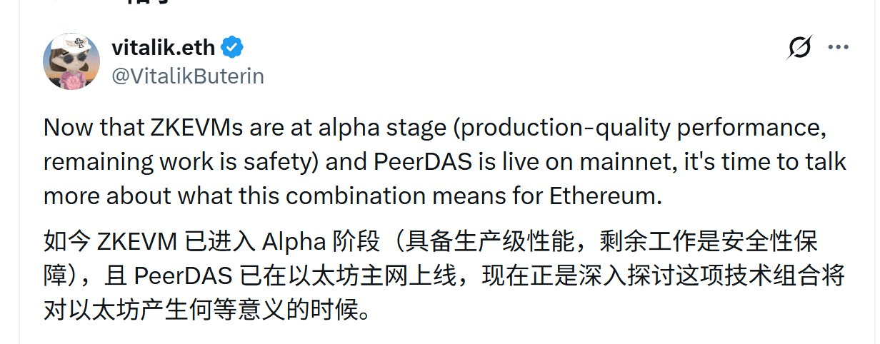 E dopo l'aggiornamento Fusaka (soprattutto l'aggiornamento PeerDAS), Ethereum ha funzionato bene, avvicinandosi ulteriormente alla ZKizzazione della rete principale, motivo per cui V神 è così entusiasta.