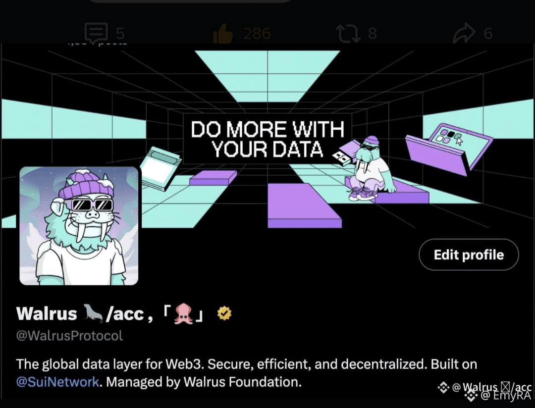 La imagen presentada refleja la visión tecnológica y futurista de #Walrus una plataforma que se posiciona como la capa global de datos para Web3. El mensaje central, “Do more with your data”, sintetiza el objetivo principal del proyecto: permitir a usuarios y desarrolladores aprovechar al máximo sus datos de forma segura, eficiente y descentralizada.