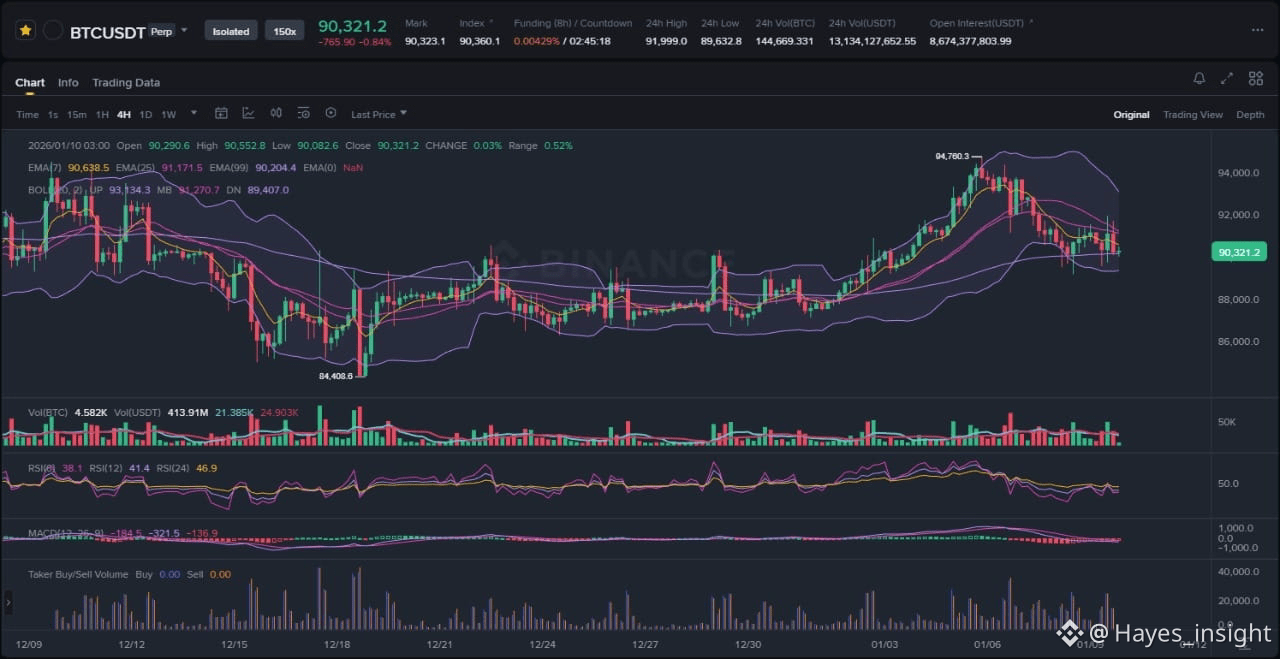 For continuation of the range toward an upside breakout, Bitcoin would need to demonstrate sustained volume expansion above the upper Bollinger Band, pushing decisively past the 45,200 resistance with a close above the 99 EMA to invalidate the downtrend structure—this could draw in fresh institutional liquidity and target the next liquidity pocket higher. Conversely, invalidation would occur on a breakdown below 42,500 support, potentially triggering a fakeout rally's reversal into accelerated downside, sweeping miner breakeven lows and testing the 40,000 psychological barrier if MACD bearishly diverges. An alternative scenario involves prolonged consolidation if RSI fails to break 50, leading to a volatility squeeze that resolves neutrally until external catalysts like regulatory clarity emerge.