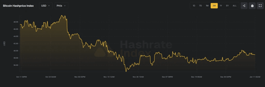 Secondo Hashrate Index, il prezzo hash si trova a $38 per PH/s al giorno. A breve distanza dalla riduzione della difficoltà, la metrica del reddito dei miner ha superato i $40 per la prima volta da novembre 2025.