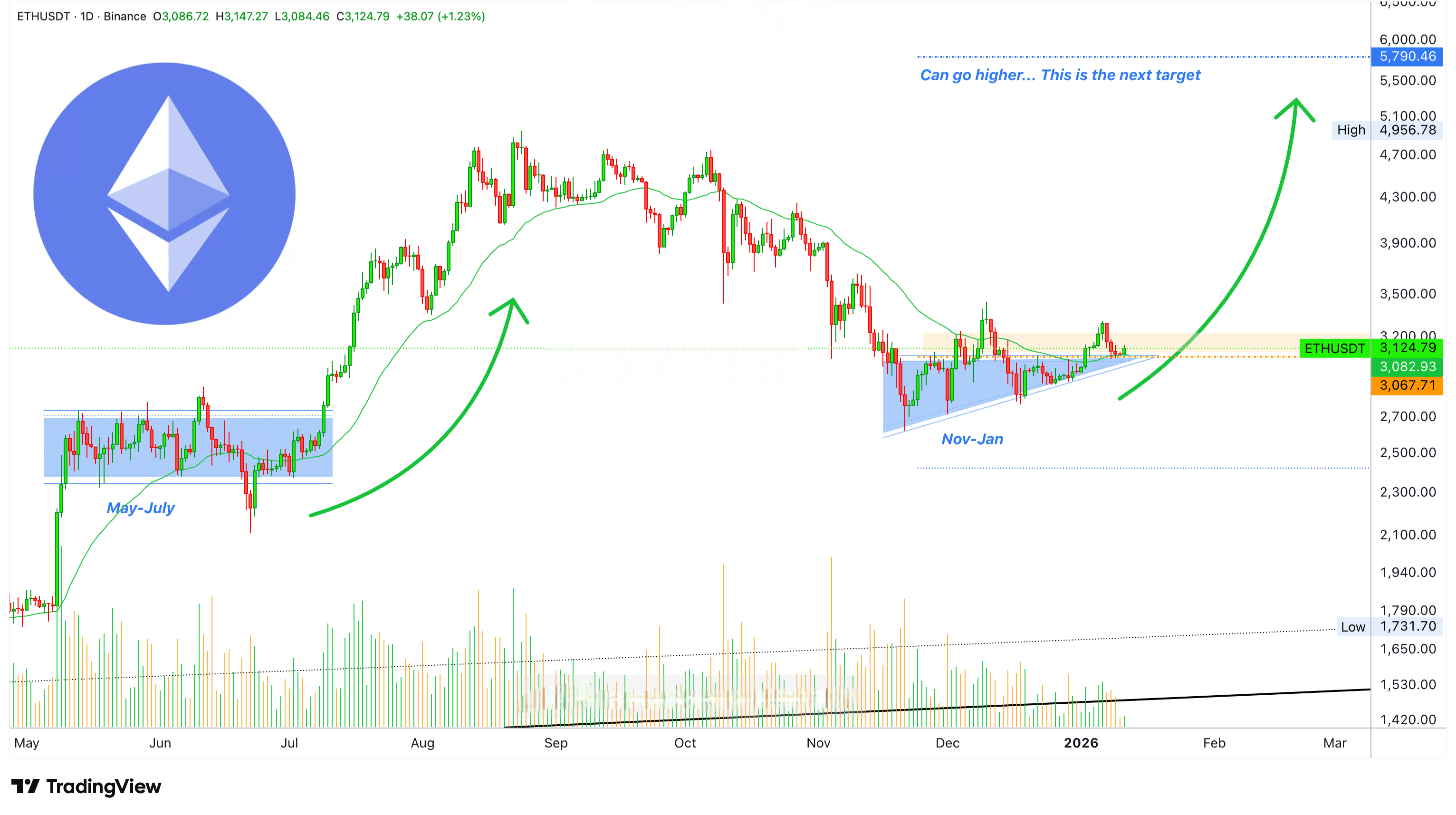 Ethereum ora sta salendo sopra i 3.000 dollari, sai, un livello importante. Scambiando sopra i 3.100 dollari, ancora abbastanza presto e lento. Nessun volume affatto. Come interpretare questi segnali? Facile, ovviamente.