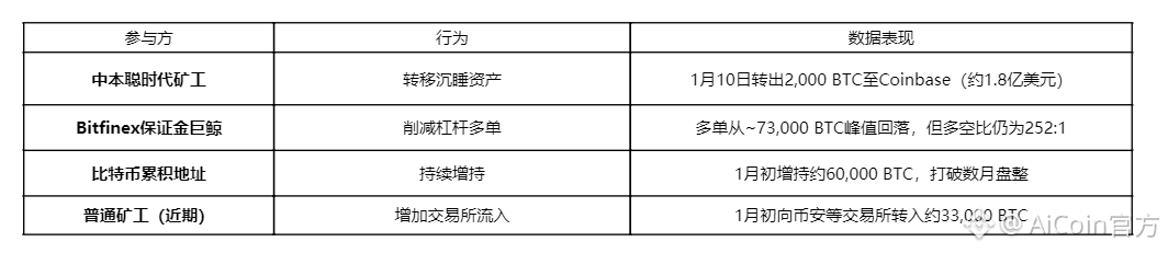 尽管近期ETF资金流剧烈波动,甚至出现单日超10亿美元的净流出,但其整体已成为一个常态化的需求来源。同时,专注于“买入并持有”的比特币累积地址在2026年初展现出强劲的吸筹能力,单周增持数万枚比特币。这解释了为何市场在面临矿工持续转出(1月初达33,000枚BTC)和远古巨鲸苏醒时,依然表现出韧性。
