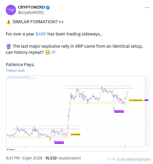 Amid the current price condition, market analyst CryptoWZRD called attention to a structure similar to what XRP observed a year ago, before it witnessed a massive upward push. His recent commentary implied that, with a similar pattern playing out again for the altcoin, XRP could be on the verge of another explosive surge.