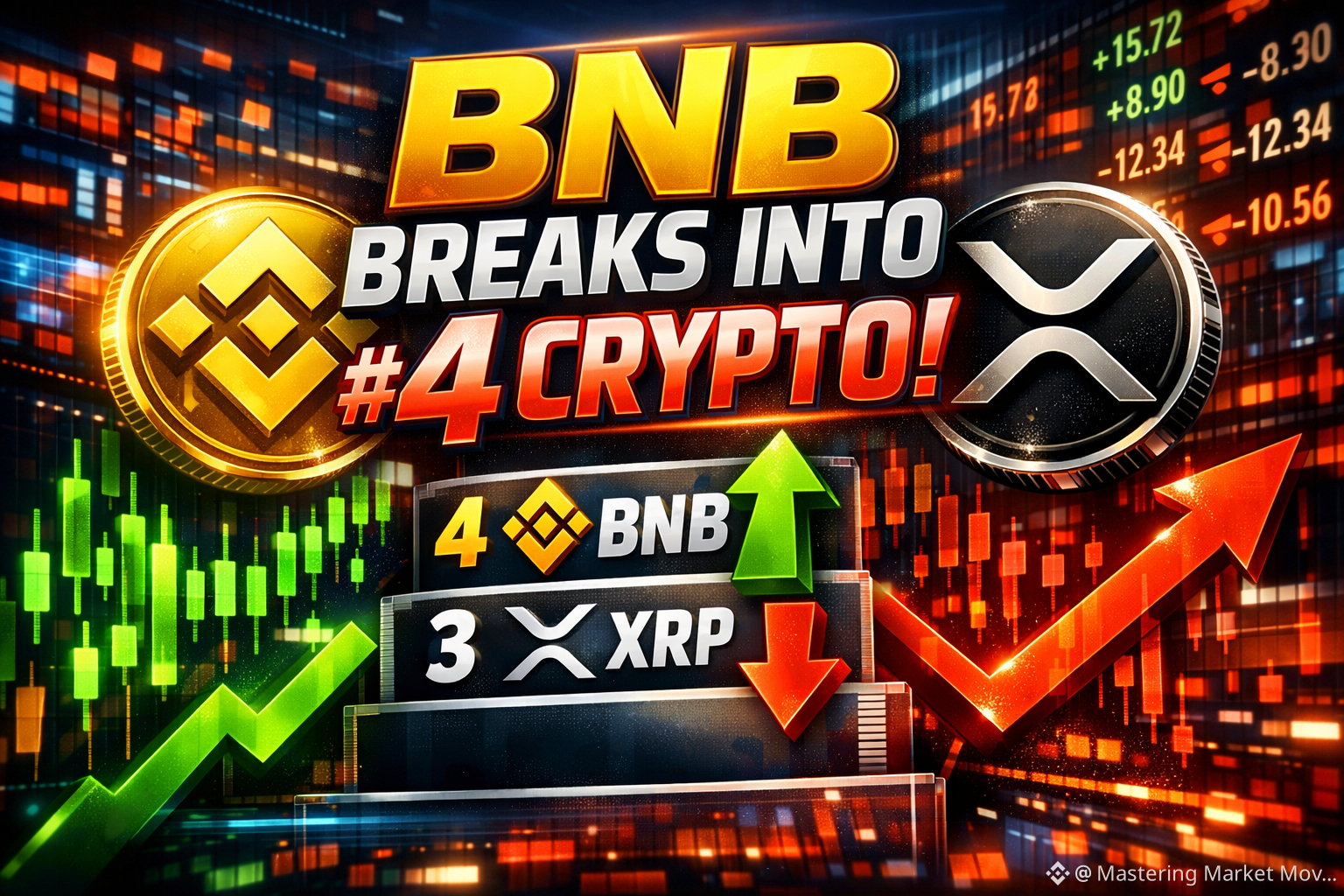 In the last 12 hours on‑chain and market‑cap data shows BNB (Binance Coin) has overtaken XRP to reclaim the #4 slot in global cryptocurrency market capitalization a significant structural shift in the large‑cap hierarchy that can influence flows sentiment and institutional allocation models