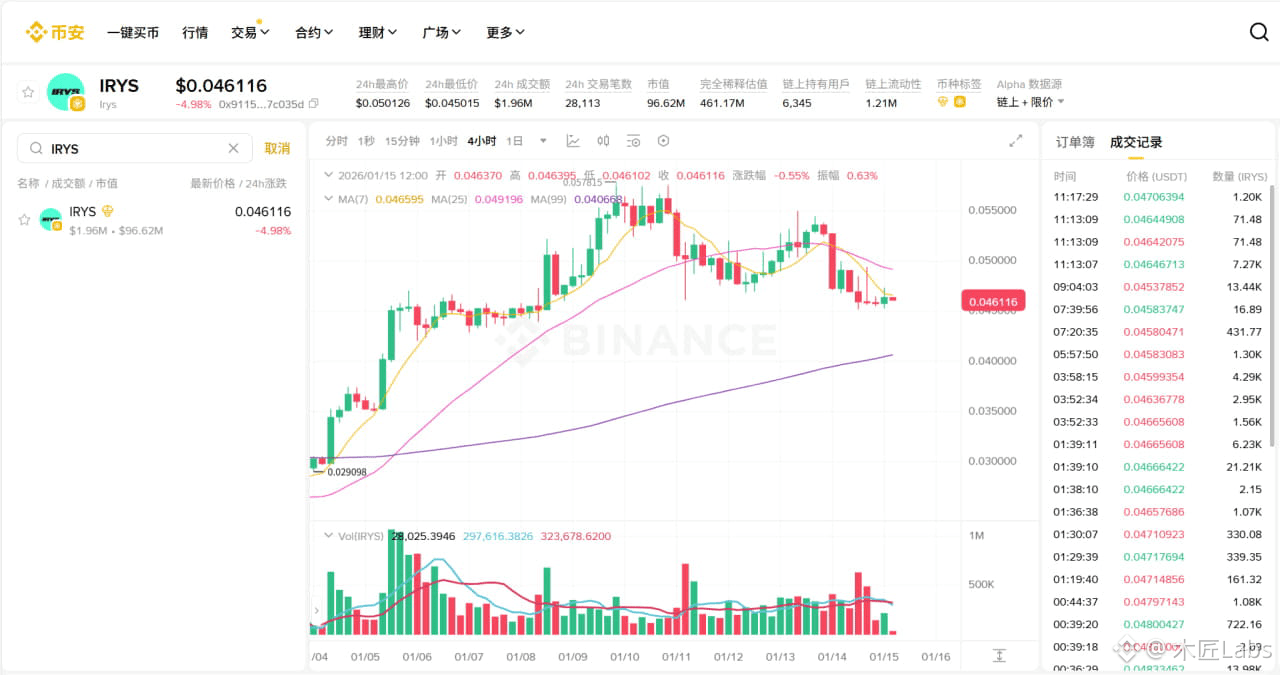 在此之前,Irys 更多被视为一个底层数据基础设施,关注点集中在架构、执行模型和数据可编程能力上。而当代币进入交易所,项目第一次需要面对市场给出的直接反馈。