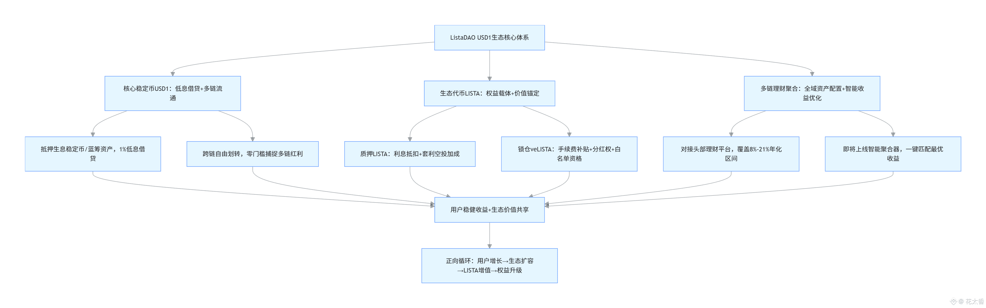 在加密市场的浪潮中,短期的操作技巧终究只是 “术”,而生态的长期价值才是 “道”。ListaDAO USD1 生态的崛起,正是抓住了用户对 “稳健理财 + 价值共生” 的核心需求,通过创新的模式设计,让加密理财不再是专业玩家的专属游戏。对于投资者而言,与其执着于蝇头小利的套利技巧,不如深度拥抱生态,在享受稳定收益的同时,静待生态成长带来的长期价值爆发 —— 这才是参与 ListaDAO 的终极逻辑,也是项目方希望向市场传递的核心信念。