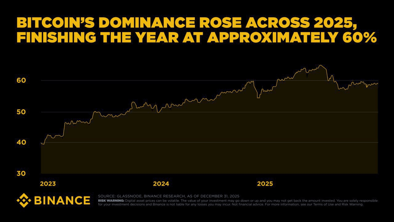 🟥La dominanza di Bitcoin si è conclusa all'incirca al 60% in un contesto di incertezza economica globale