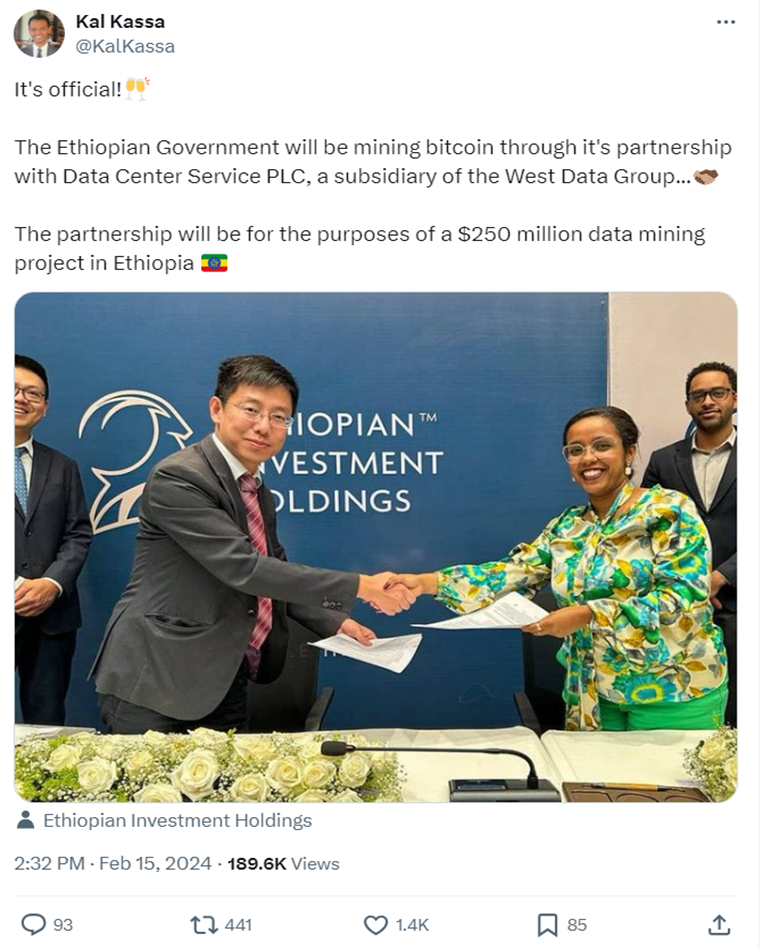 Sebbene l'annuncio non menzioni direttamente il mining di criptovalute, i report suggeriscono che questa attività potrebbe essere parte dello sforzo congiunto. Il mining di Bitcoin è un argomento controverso in Etiopia, soprattutto dato il recente lancio della Grand Ethiopian Renaissance Dam, che ha alterato i prezzi dell'elettricità nel paese.