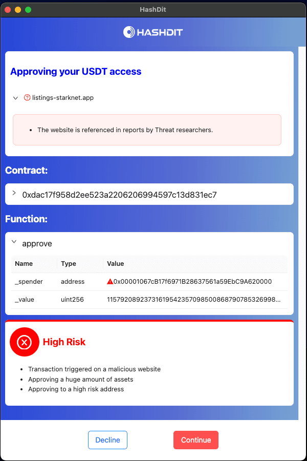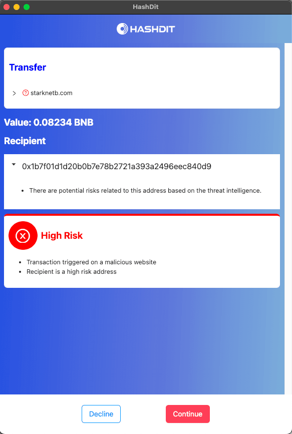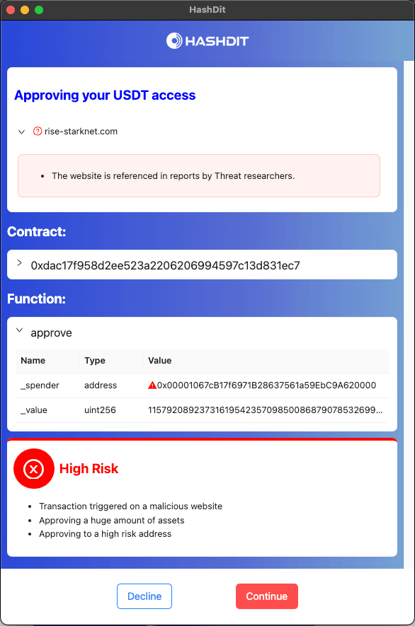 Il nostro consiglio: stai lontano! Si tratta di siti Web di phishing progettati per rubare i tuoi fondi. Ti suggeriamo di utilizzare la nostra estensione HashDit per Chrome per proteggere il tuo portafoglio.