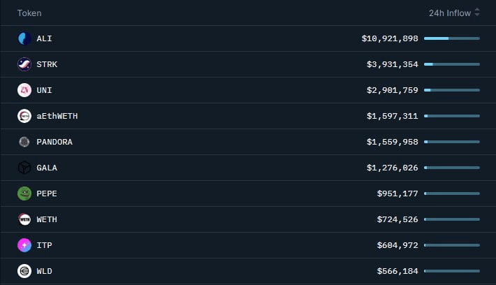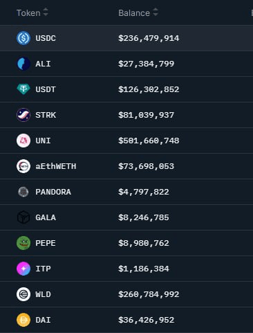 🔗Valute più diffuse per i portafogli intelligenti: #ALI#STRK #UNI#PANDORA #GALA#PEPE #ITP#WLD