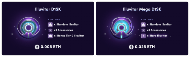 Illuvitar è un ritratto NFT personalizzabile su Illuvium Beyond. I giocatori possono ottenere Illuvitar e i suoi accessori acquistando D1SK e poi abbinarli all'esclusivo Illuvitar NFT. Esistono cinque tipi di accessori, inclusi copricapi, occhiali, pelli, vestiti e oggetti di scena. Esistono due tipi di D1SK, Standard D1SK e Mega D1SK. D1SK standard include 1 Illuvitar, 3 accessori e 1 Illuvitar di grado T0, al prezzo di 0,005 ETH. Mega D1SK sostituisce l'Illuvitar di grado T0 nello Standard D1SK con un Illuvitar più raro, ma il prezzo è più costoso dello Standard D1SK, al prezzo di 0,025 ETH.