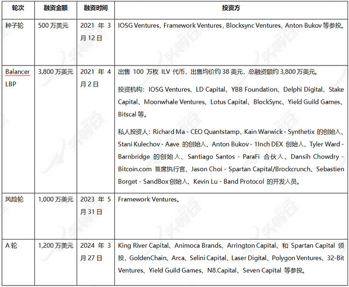 Al 27 marzo 2024, Illuvium ha completato 4 round di finanziamento esterno ai giochi, con un finanziamento totale che ha raggiunto i 65 milioni di dollari. Gli investitori includono IOSG Ventures, Framework Ventures, Animoca Brands, Spartan Capital, Polygon Ventures, Yield Guild Games, Delphi Digital, ecc. . L’ultimo round di finanziamento è stato completato il 27 marzo 2024, quindi le attuali capacità finanziarie del team dovrebbero essere relativamente sufficienti.