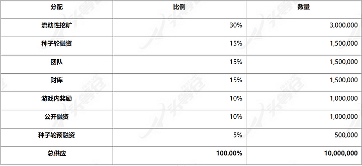 Dal punto di vista dell'allocazione, i token assegnati al finanziamento rappresentano il 30% del totale dei token, i token assegnati alla squadra e alla tesoreria rappresentano il 30% dell'allocazione totale e il restante 40% dei token verrà utilizzato come liquidità i premi di puntata e i premi di gioco vengono distribuiti ai partecipanti ecologici. Poiché i token sono stati emessi da molto tempo, la maggior parte dei token è stata sbloccata.