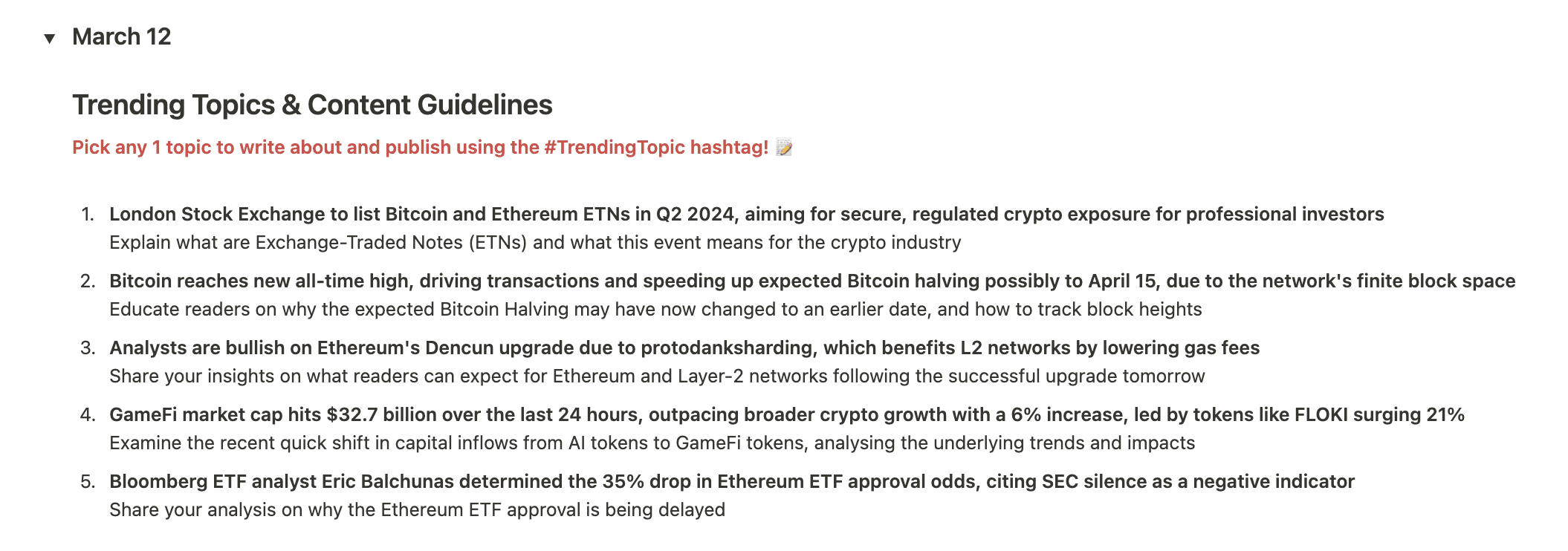 この投稿は、月曜日から金曜日の 07:00 UTC に毎日更新され、創造的なアイデアを刺激するのに役立つ最新のトレンド トピックとコンテンツ ガイドラインが掲載されます。