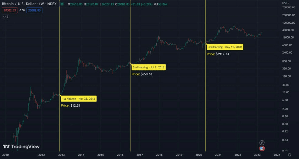そこから、過去のビットコイン半減期後、ビットコインの価格が大幅に上昇したことがわかります。