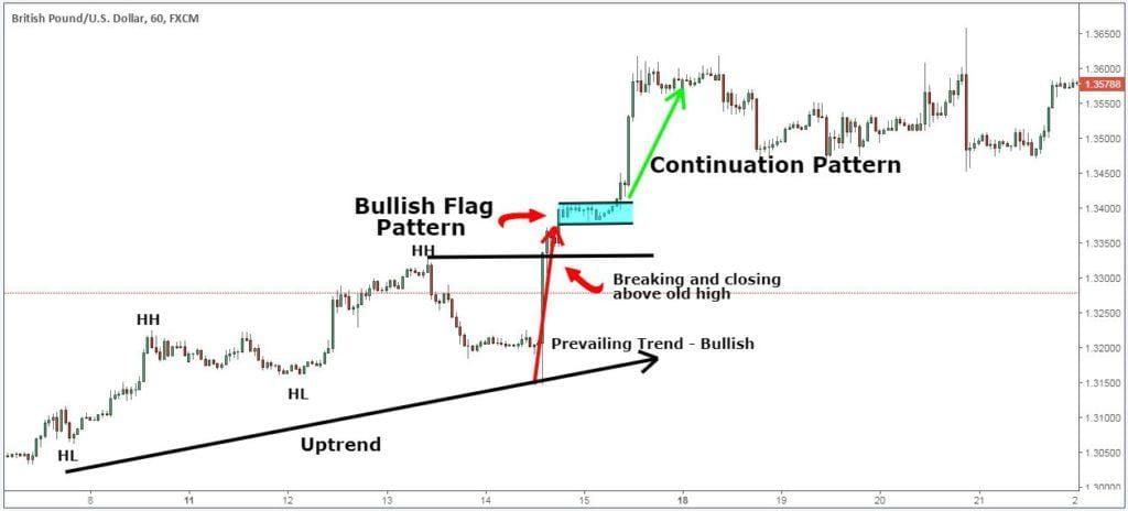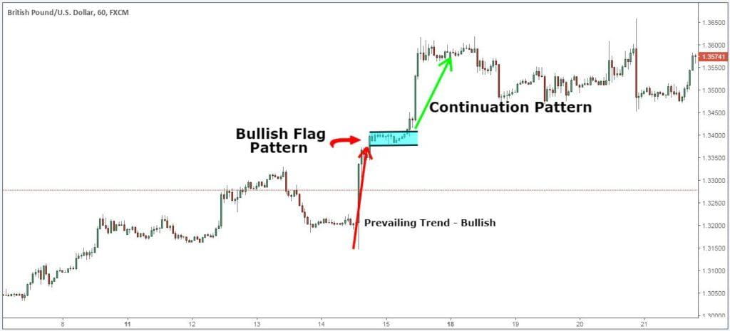 For example, a bullish flag pattern – you can read more about it HERE – is a pattern that forms after a larger move up, and the pattern itself is just a brief form of relief (or consolidation) from the underlying trend, before breaking to new highs.