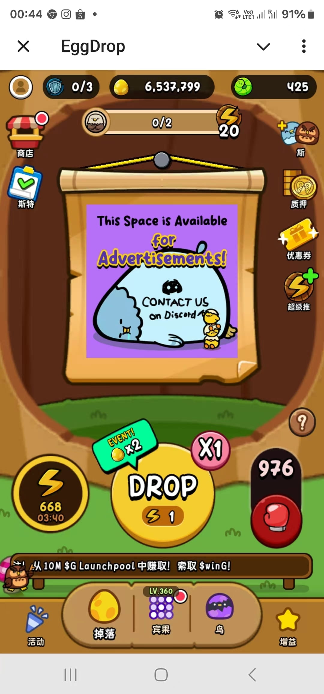 Rysunek 3 przedstawia Egg Drop, grę łańcuchową opracowaną przez koreańską firmę Gomble Games. Jest to gra polegająca na rzucaniu kostkami w celu uzyskania wysokiego wyniku. Gdy gracz rzuci kostką, spadnie kilka jajek Jeśli wynik nie będzie idealny, gracz również będzie mógł skorzystać z rekwizytów i ponownie rzucić kostką. Gracze mogą ofiarować punkty ptaków i robaków wylosowane w grze na wszystkich poziomach, aby otrzymać żetonowe zrzuty. Dzisiaj osiągnąłem poziom 360. Ktoś z mojej grupy graczy grających łańcuchowo osiągnął poziom 800. Jestem pod wielkim wrażeniem! Gomble Games Binance również zainwestowało.