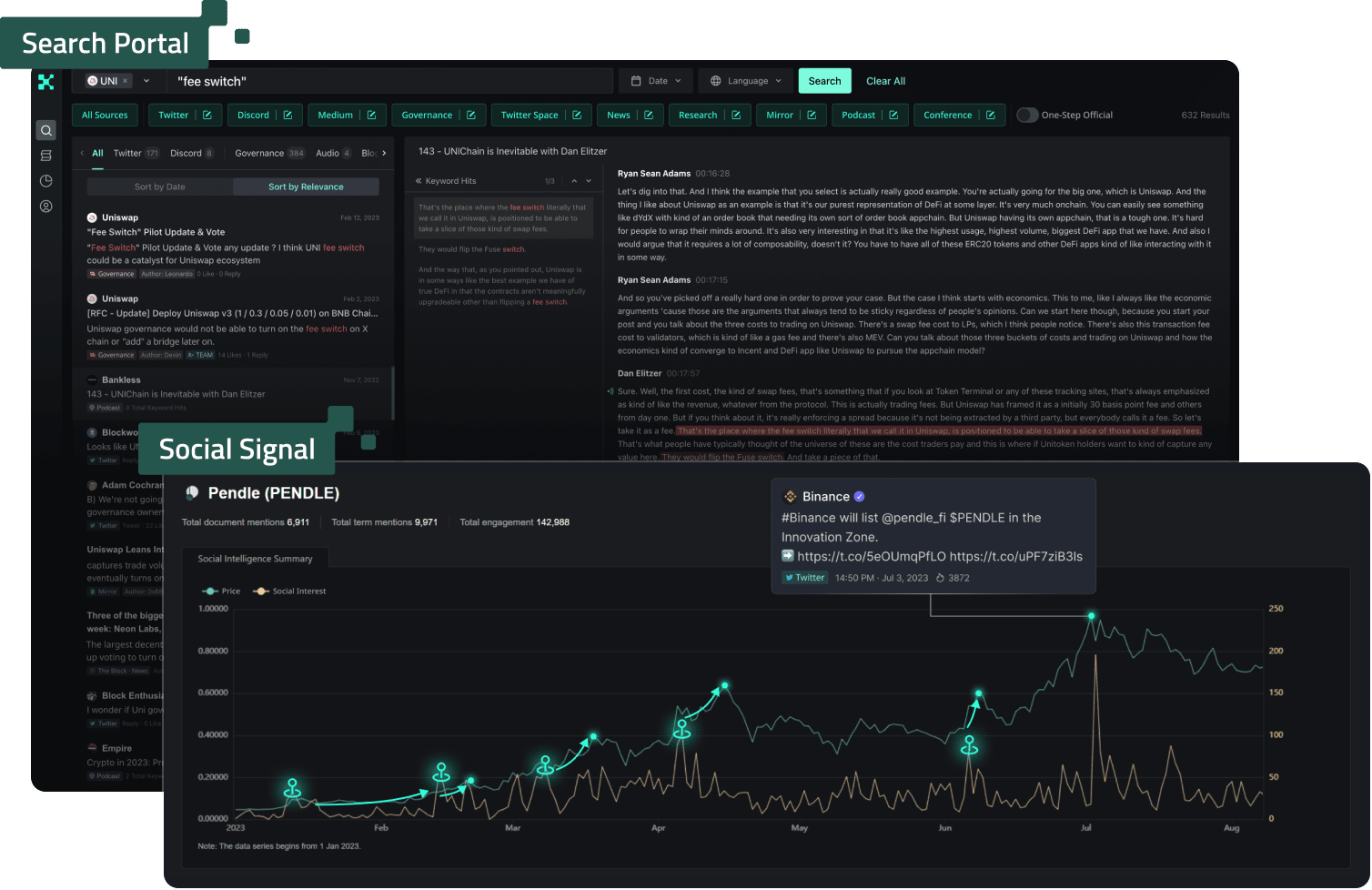 • Śledzenie Nastrojów: Analizuje nastroje rynkowe, aby dostarczać cennych informacji o trendach i odczuciach społeczności wobec konkretnych aktywów.