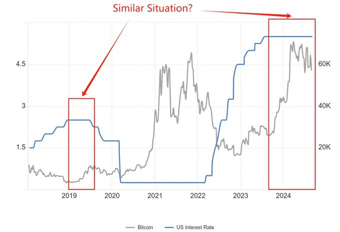 ✜ Wykresy stóp procentowych i cen Bitcoina są identyczne jak w 2020 roku i wydaje się, że jesteśmy blisko powtórki.
