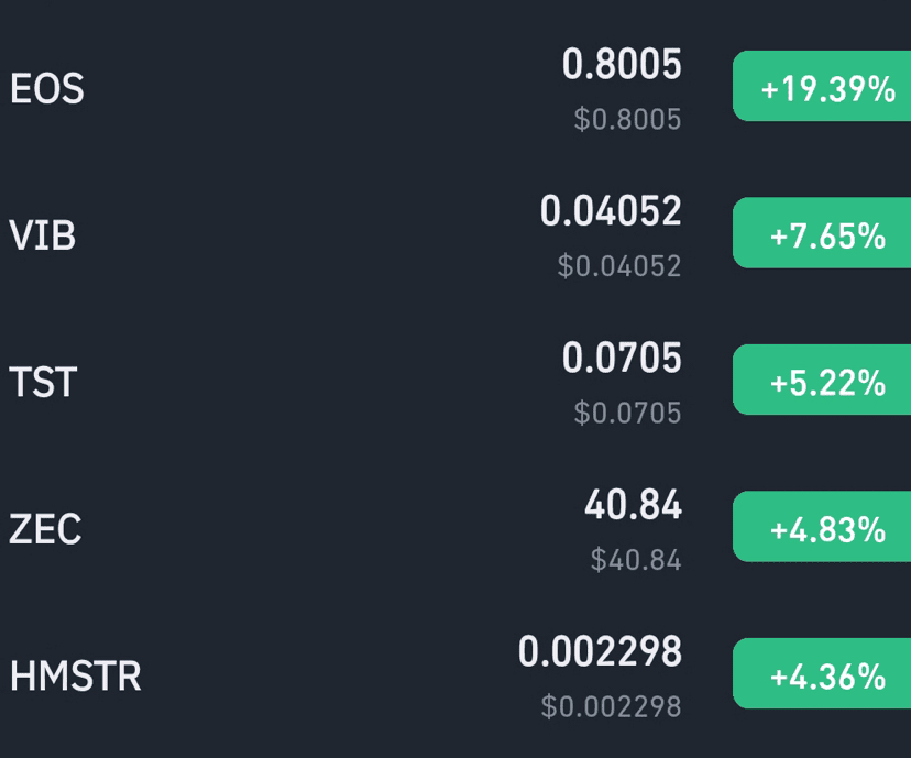 ❗️Mimo niepewności na szerszym rynku, kilka wyróżniających się altcoinów stabilnie rośnie. Tokeny takie jak $EOS , #VibAnalysis , #TST , $ZEC , $HMSTR i #PENDLE świecą zielonymi wskaźnikami, pokazując odporność nawet w zmiennych warunkach.