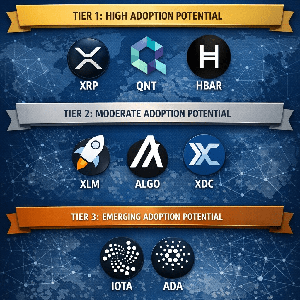 XRP, XLM, QNT, HBAR, ALGO, XDC, IOTA, ADA.