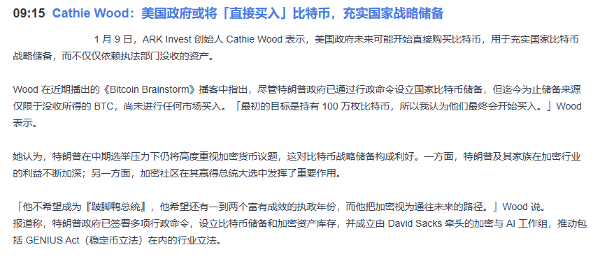 ARK Invest "Krolowa Bursy" Cathie Wood jasno powiedziała, że rząd USA może w przyszłości bezpośrednio zakupić bitcoina, aby wzmocnić strategiczne zapasy. Co to oznacza?