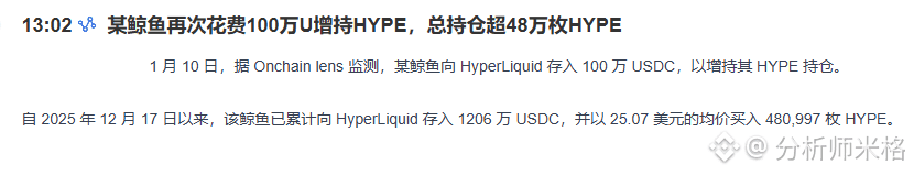 新闻说有个巨鲸又存了100万U买HYPE,这已经是他在不到一个月里,累计砸进去的第1206万美金了,总共买了48万多枚,均价25.07美元