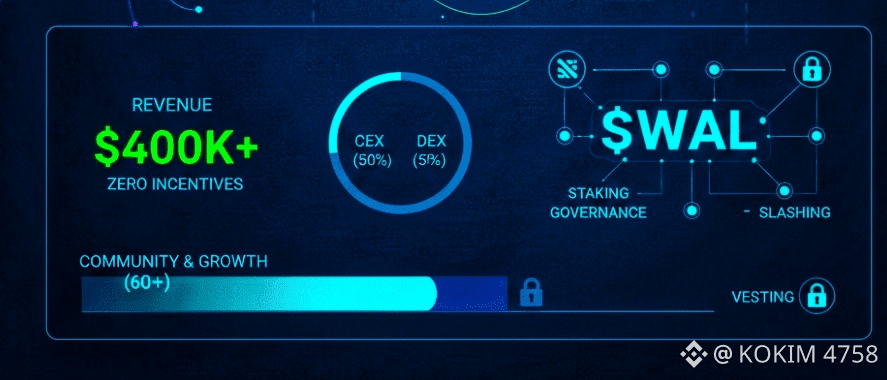 Outro ponto negligenciado em muitas análises superficiais é a estrutura real de tokenomics: dos 5 bilhões de $WAL, mais de 60% foi destinado à comunidade e reservas para crescimento orgânico, com vesting prolongado e mecanismos de liberação controlada. Isso é material — não apenas um rótulo bonito — porque reduz drasticamente o risco de dumping abrupto por holders institucionais nos primeiros trimestres — um tema crítico para qualquer projeto Web3 escalável.