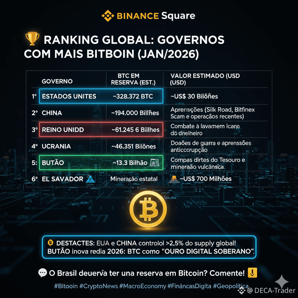 🏆 Ranking Global de Governos (BTC Holdings - Jan/2026)