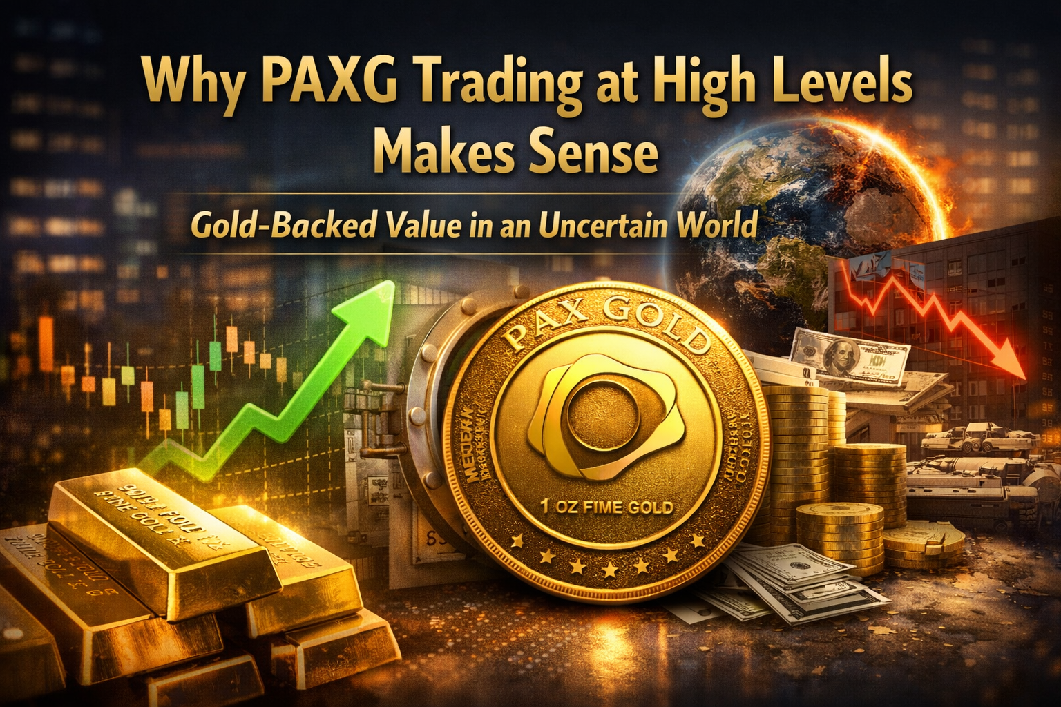 PAXG różni się podstawowo od większości aktywów kryptowalutowych. Każdy token PAXG jest zabezpieczony w proporcji 1:1 złotem fizycznym, które jest bezpiecznie przechowywane w zarejestrowanych skarbcach. Oznacza to, że cena PAXG jest bezpośrednio powiązana z rynkiem złota na świecie. Gdy ceny złota rosną na arenie międzynarodowej, PAXG naturalnie odbija ten ruch.