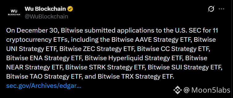 Bitwise Asset Management has submitted an application to the U.S. Securities and Exchange Commission (SEC) for the approval of 11 new altcoin-focused ETFs—and if approved, this move could unlock a fresh wave of institutional capital into the crypto space. A decision is expected in March 2026.