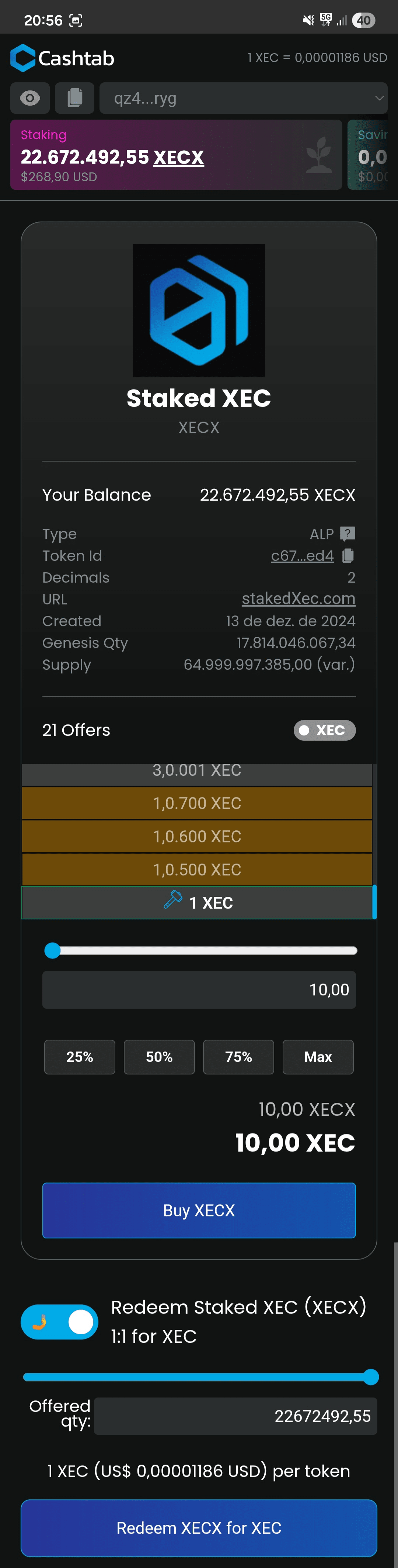 (uwaga: myślę, że minimalna ilość XECX, aby otrzymać nagrody za staking, to 1,000 XECX, co stanowi bardzo niski próg wejścia).