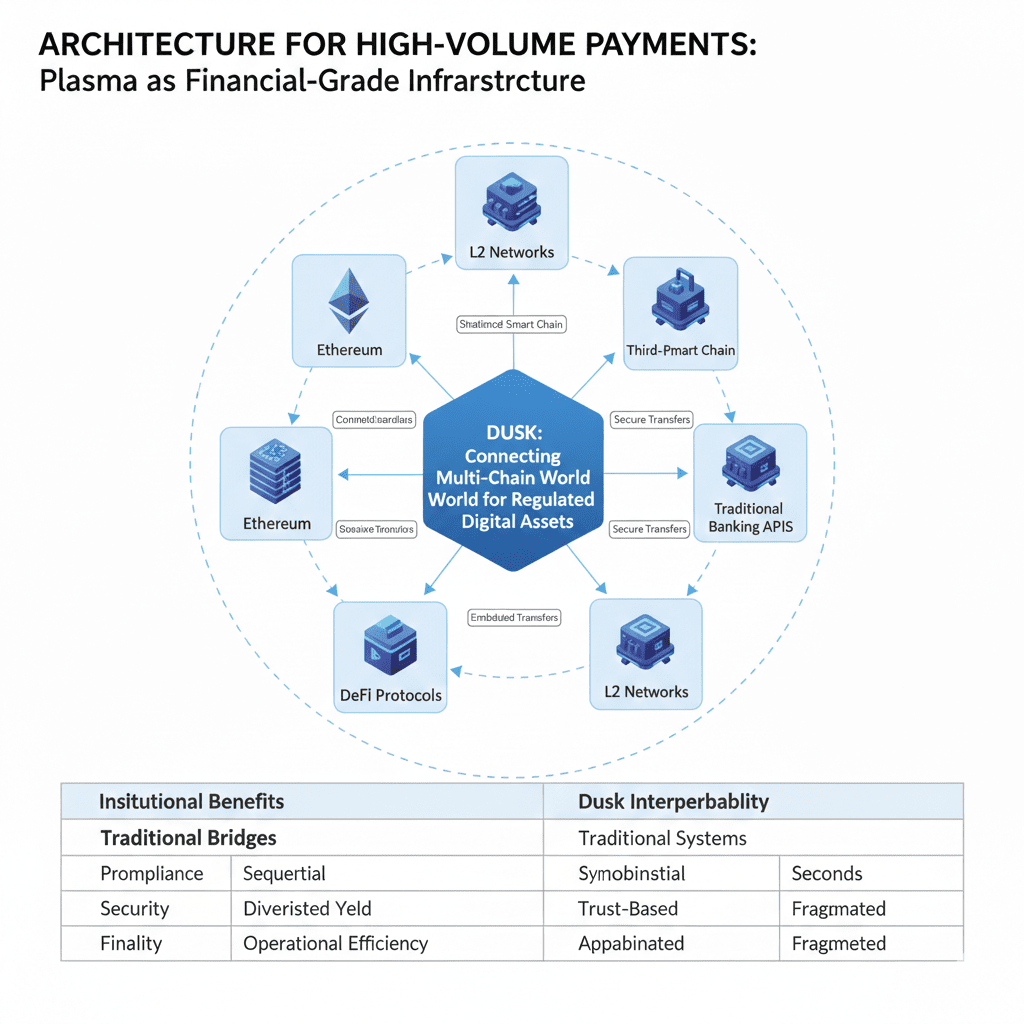 W sercu podejścia Dusk leży filozofia, że interoperacyjność i regulacje nie są sobie nawzajem przeciwstawne. Zbyt często protokoły mostowe priorytetują szybkość lub płynność kosztem nadzoru, pozostawiając instytucje niepewne, a użytkowników narażonych. Dusk odwraca ten paradygmat. Jego infrastruktura zapewnia, że transakcje międzyłańcuchowe spełniają wymagania regulacyjne, jednocześnie zachowując prywatność i poufność niezbędną dla finansów na poziomie instytucjonalnym. Wyobraź sobie wysoce zabezpieczony węzeł celny w globalnym porcie: każda przesyłka jest starannie kontrolowana, a jednak ruch pozostaje efektywny, płynny i przewidywalny. W tej analogii Dusk jest węzłem celnym dla aktywów cyfrowych, zapewniającym zgodność bez spowolnienia przepływu wartości.