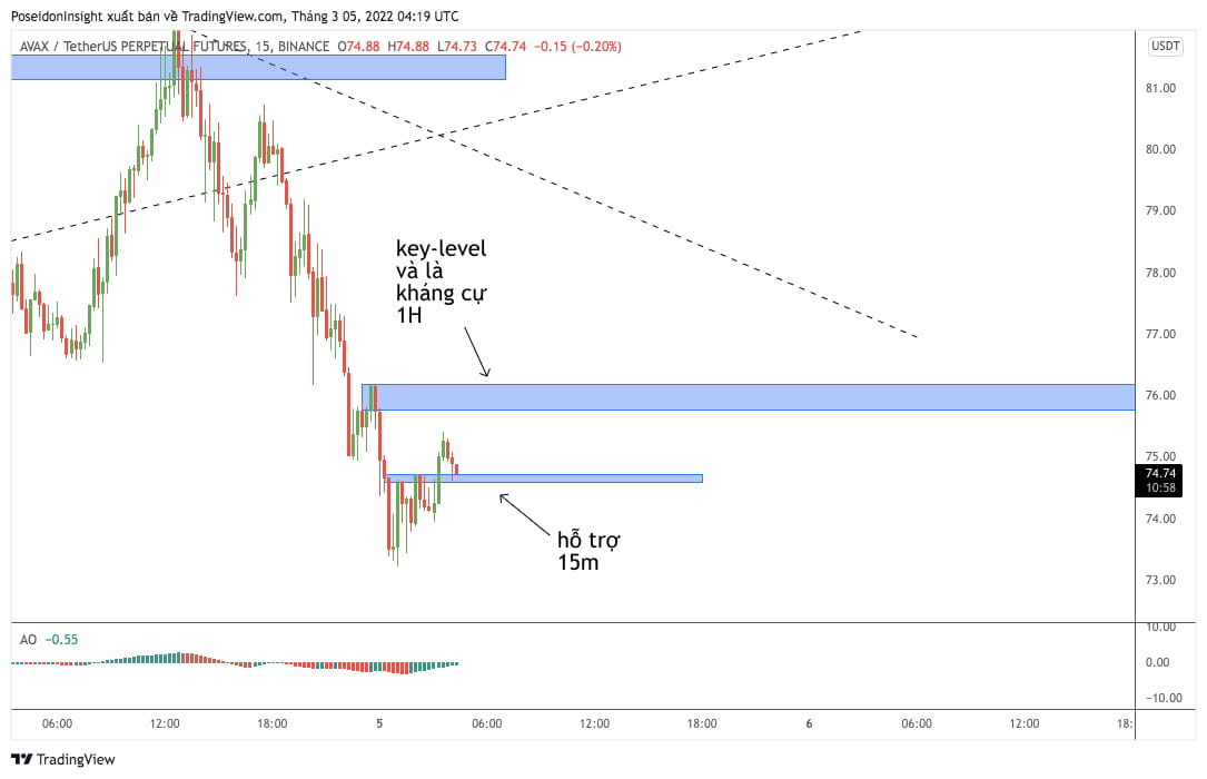 Na tym obrazku ATOM stworzył trend wzrostowy w ramce 4H. W tym momencie możemy podążać za trendem 4H, czekając, aż cena wróci do dwóch ważnych stref wsparcia (niebieski).