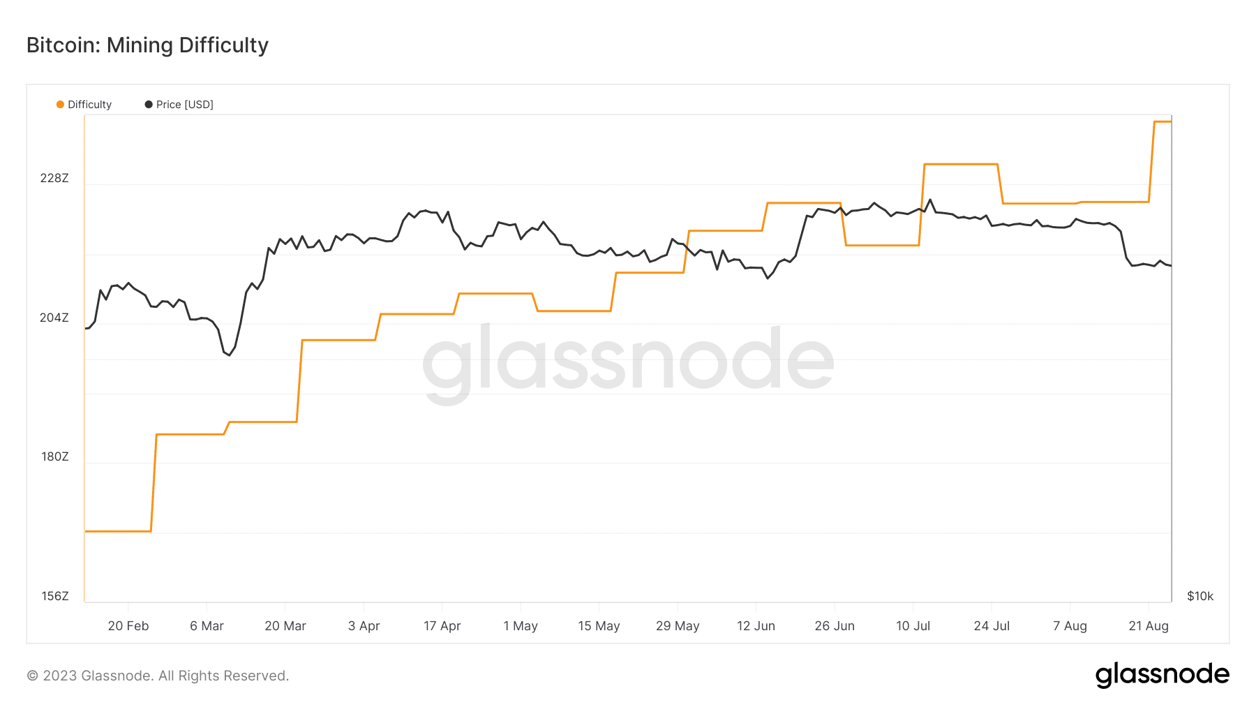 Apesar da queda no preço, os mineradores de Bitcoin estão aumentando suas atividades com cerca de 6 meses restantes até o halving. As atividades de mineração de Bitcoin fornecem pistas vitais sobre a saúde da rede e a lucratividade no setor de mineração, e são constantemente monitoradas por especialistas no ecossistema cripto. De acordo com a empresa de análise on-chain Glassnode, a taxa de hash da rede atingiu seu nível mais alto nos últimos 4 meses em 26 de agosto. O pico anterior de 4 meses foi registrado há mais de um mês, em 7 de julho.