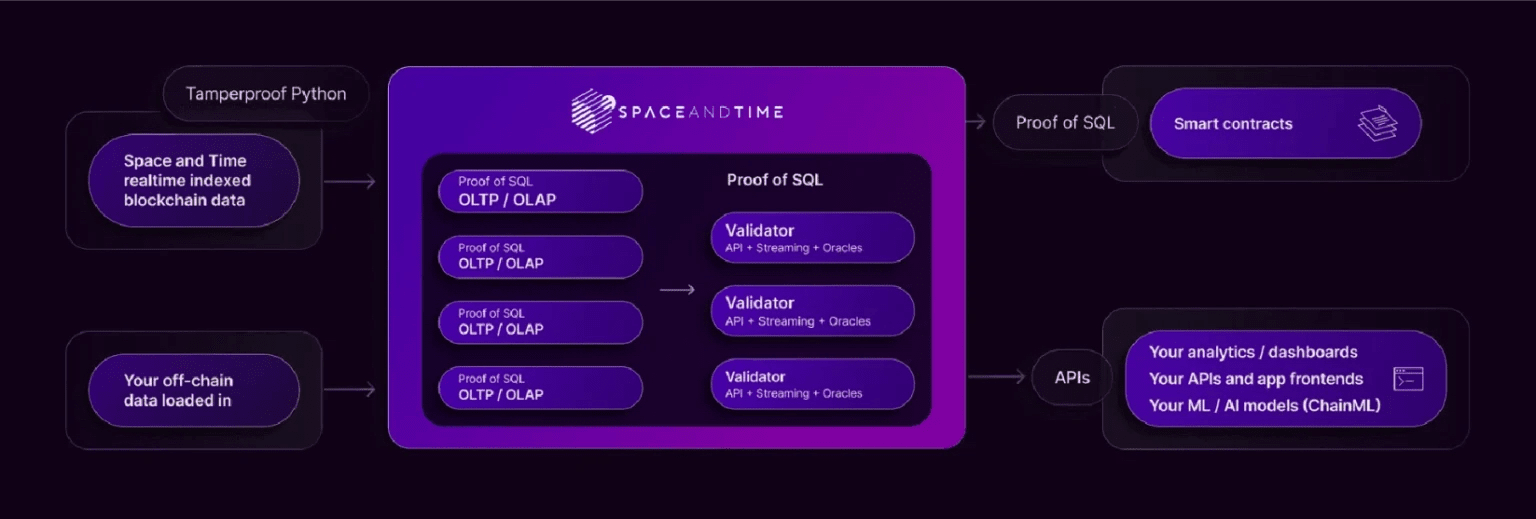 Space and Time é uma plataforma de dados Web3 que permite a contratos inteligentes e agentes de IA processar de forma segura dados on-chain e off-chain usando criptografia de conhecimento zero.