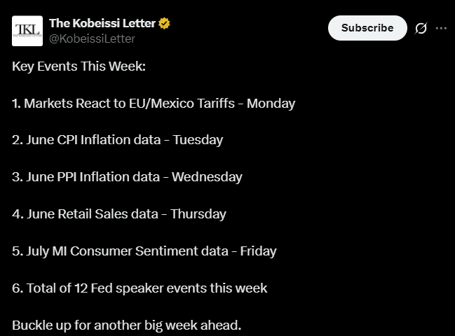 Se o IPC sair alto, a Kobeissi Letter e outros especialistas preveem altas chances de venda, especialmente porque a tarifa de Trump já é uma ameaça.