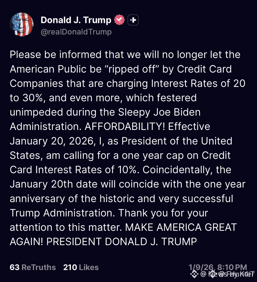 President Trump is now calling for a 10% cap on ALL credit card interest rates — a direct hit on banks that have been charging 20–30%+ like it’s free money.