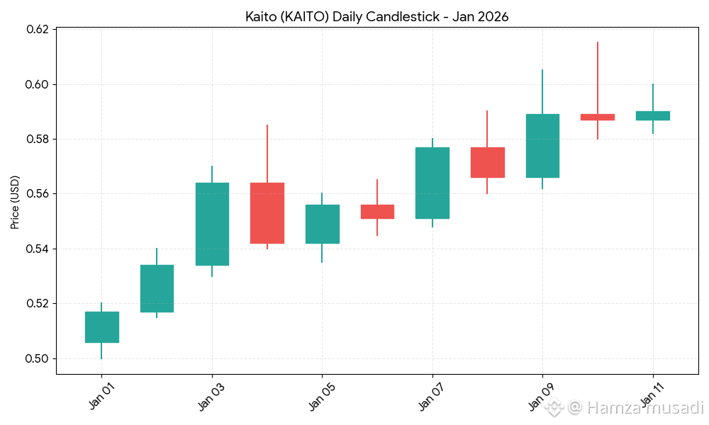 KAITO has maintained a steady bullish incline throughout January, moving from $0.51 to a local high of $0.59. The chart shows a series of higher lows, suggesting strong accumulation ahead of the unlock event.