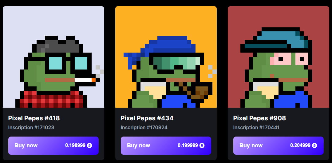 Os blocos Bitcoin podem armazenar até 4 MB de dados, com base nas limitações de tamanho do bloco, e a maior parte do btcnft é do tipo pixel.