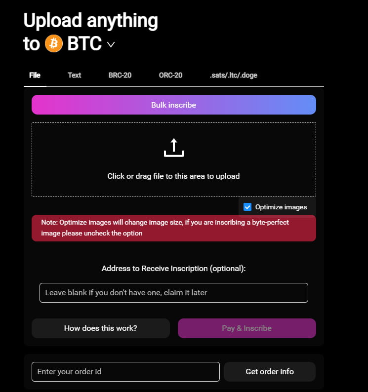 Através do ordswap, você pode fazer upload de arquivos, fotos, nomes de domínio, textos, etc., e também pode gravar brc20 ou orc20, etc.