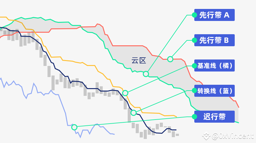 3. 迟行带(Lagging Span)后移指标:将目前价格向左平移26天的中轴慢线。