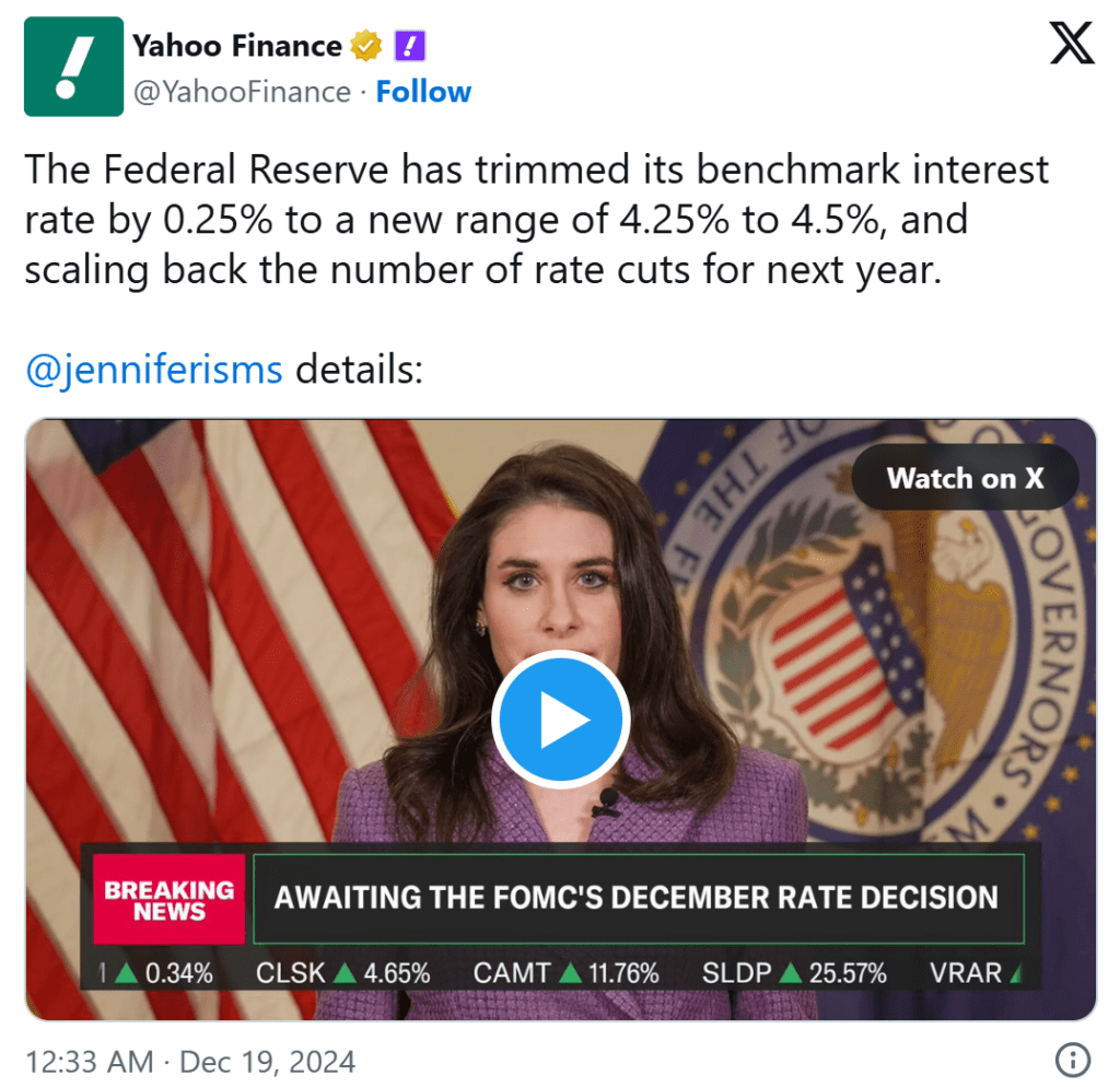 În plus, Powell a dezvăluit că doar 2 reduceri de dobândă vor avea loc în 2025. Aceste declarații au alimentat un rezultat descendent și a început ca luare de profit, dar s-a transformat într-o avalanșă de presiune de vânzare.