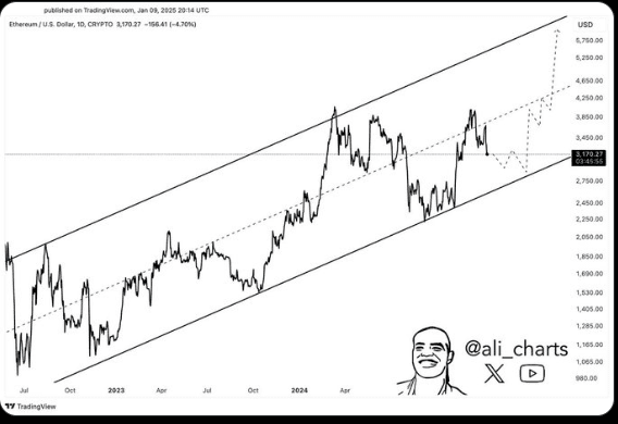 Traiectorie Optimistă: Canalul ascendent sugerează că Ethereum ar putea urca constant, cu niveluri de rezistență la 3,800 USD și 4,100 USD fiind esențiale pentru o mișcare ascendentă suplimentară.