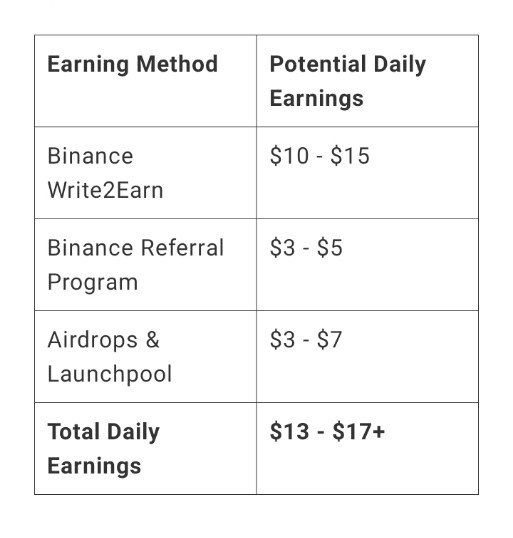 1. Programul Binance Write2Earn ($10 - $15 pe zi)